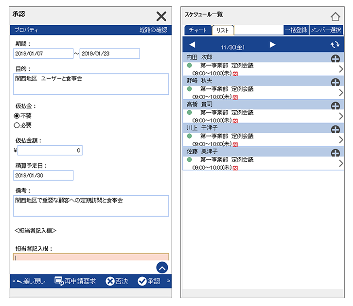 掲示板とワークフローの活用で業務手順を社内・チームで共有することができます。